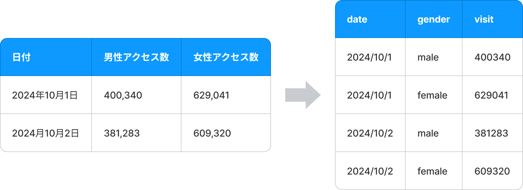 分析や機械学習・AIで扱いやすいよう徹底して縦持ちデータに整形
